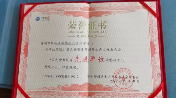 这份沉甸甸的荣誉,属于每一位信任学校的学员,属于每一位兢兢业业的教职工,也属于每一位支持我们的合作伙伴。是大家的共同努力与坚持,让我们在国民营养服务的道路上,留下了坚实的脚印。